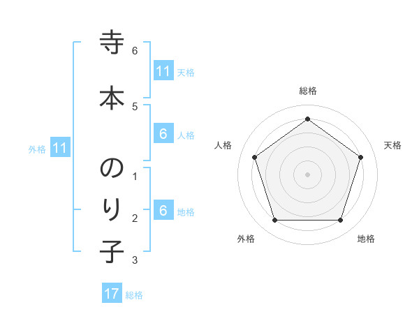 寺本 のり子さんの天格は11画の4点!