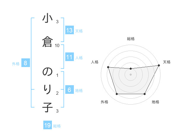 小倉 のり子さんを姓名の画数から五運を鑑定