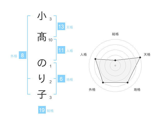 小髙 のり子さんを姓名の画数から五運を鑑定
