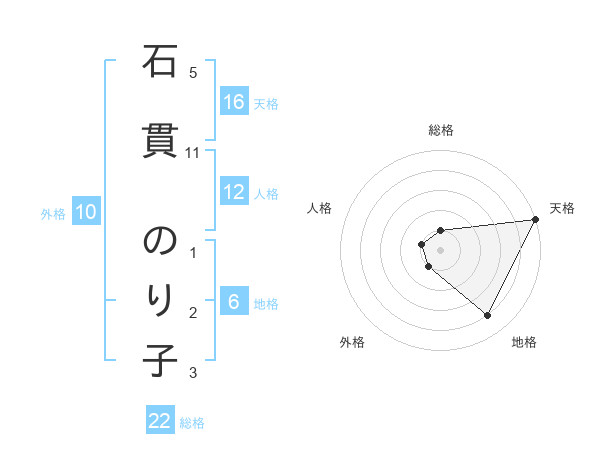石貫 のり子さんの天格は16画の5点!