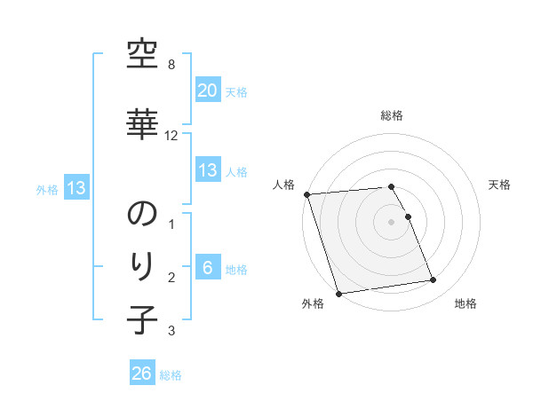 空華 のり子さんの外格は13画の5点!