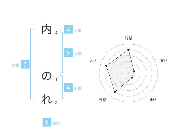 内 のれさんの総格は8画の4点!