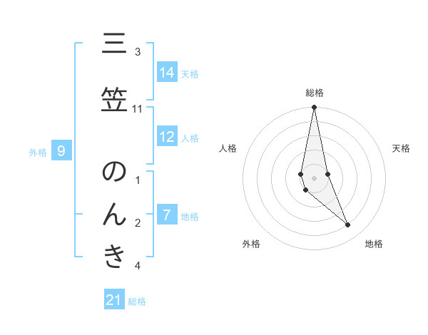 三笠 のんきさんを姓名の画数から五運を鑑定