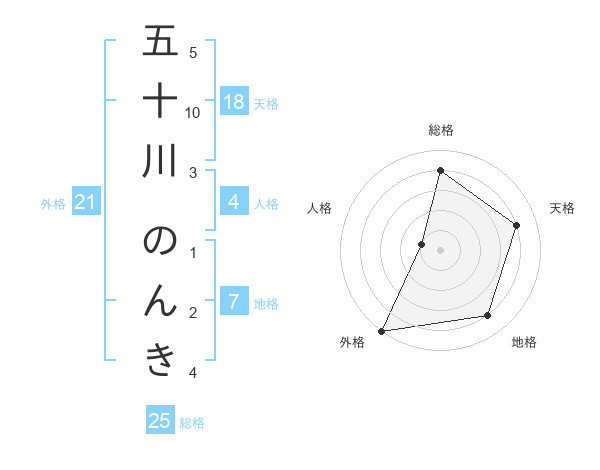 五十川 のんきさんを姓名の画数から五運を鑑定