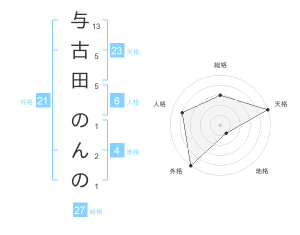与古田 のんのさんの天格は23画の5点!
