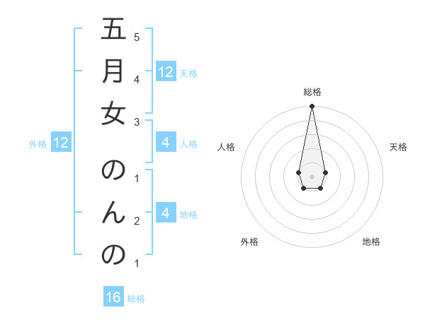五月女 のんのさんの総格は16画の5点!
