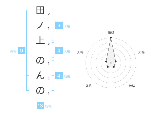 田ノ上 のんのさんを姓名の画数から五運を鑑定