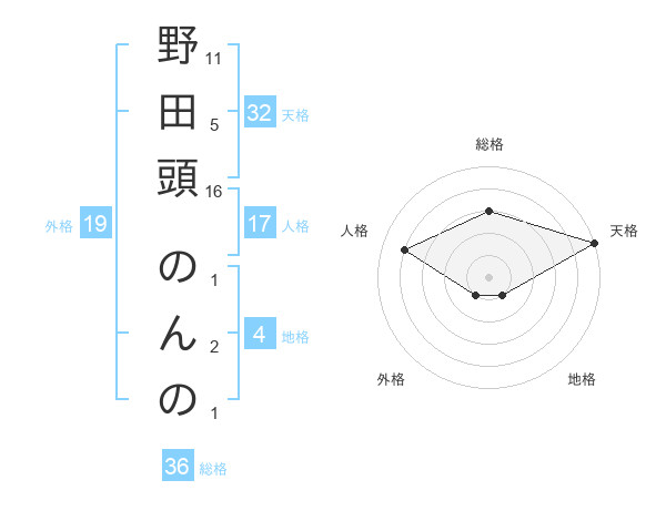 野田頭 のんのさんの天格は32画の5点!
