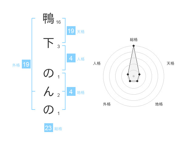 鴨下 のんのさんを姓名の画数から五運を鑑定