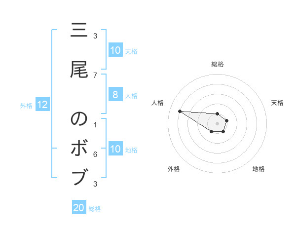 三尾 のボブさんを姓名の画数から五運を鑑定