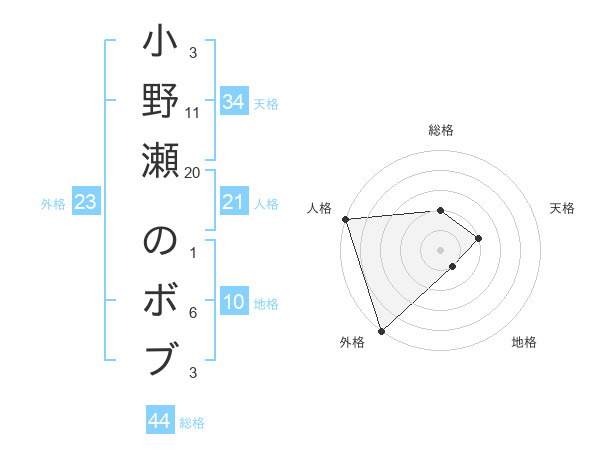 小野瀬 のボブさんの総格は44画の2点