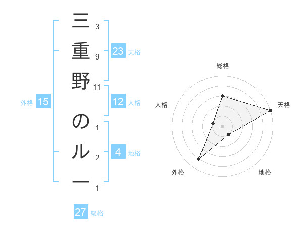 三重野 のルーさんを姓名の画数から五運を鑑定