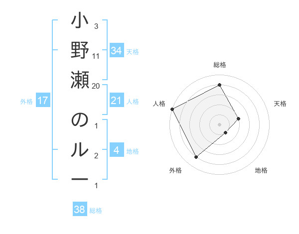 小野瀬 のルーさんを姓名の画数から五運を鑑定