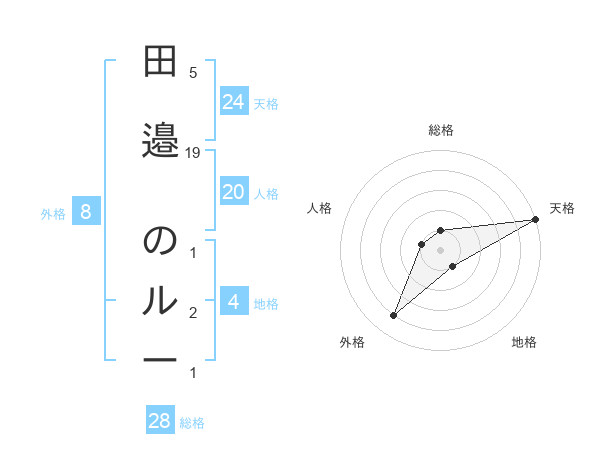 田邉 のルーさんを姓名の画数から五運を鑑定