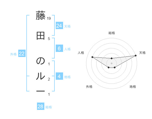藤田 のルーさんを姓名の画数から五運を鑑定