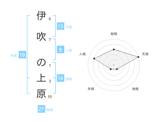 伊吹 の上原さんの天格は13画の5点!