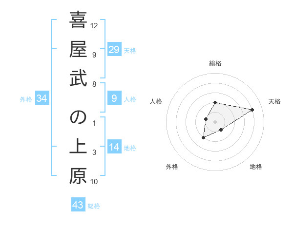 喜屋武 の上原さんの総格は43画の2点!