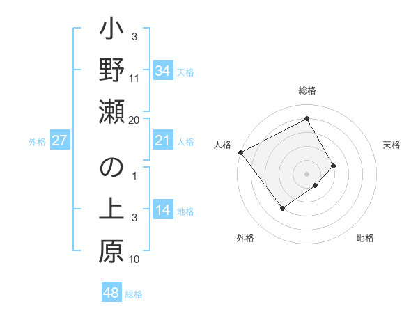 小野瀬 の上原さんを姓名の画数から五運を鑑定