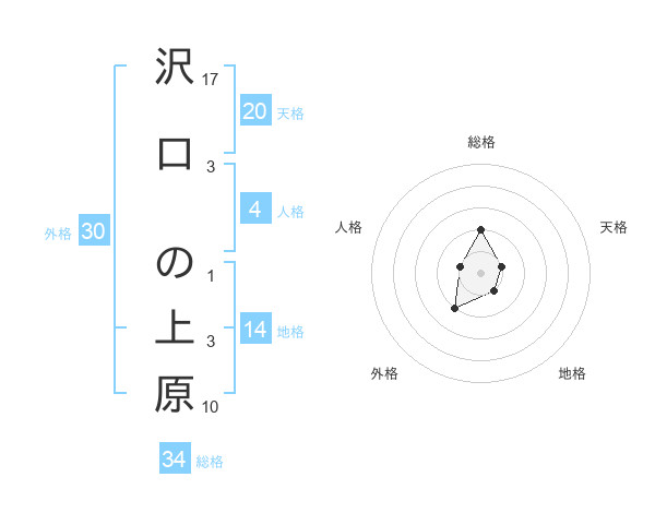 沢口 の上原さんを姓名の画数から五運を鑑定