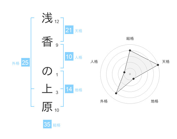 浅香 の上原さんの総格は35画の4点!