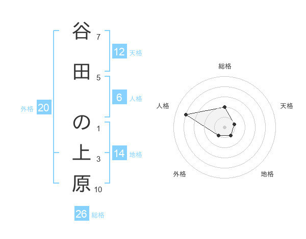 谷田 の上原さんを姓名の画数から五運を鑑定