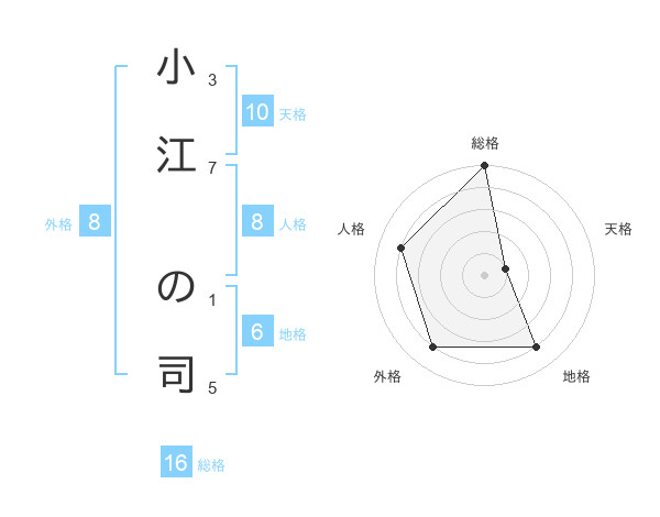 小江 の司さんの外格は8画の4点!