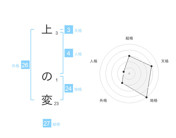 上 の変さんの天格は3画の4点!