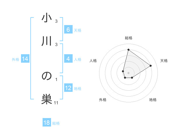 小川 の巣さんの総格は18画の4点!