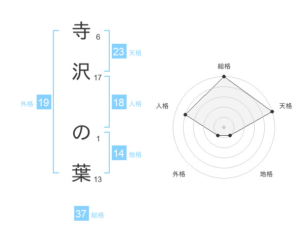寺沢 の葉さんの天格は23画の5点!