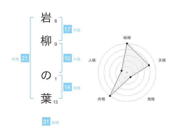岩柳 の葉さんを姓名の画数から五運を鑑定