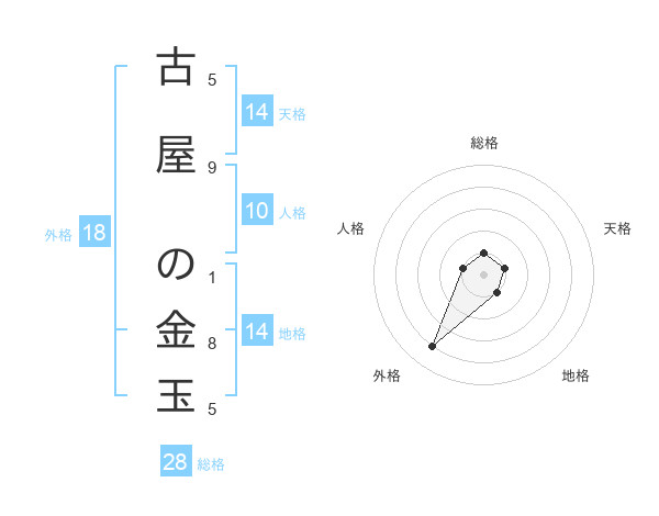 古屋 の金玉さんを姓名の画数から五運を鑑定