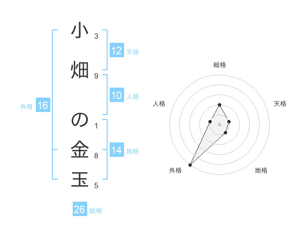 小畑 の金玉さんを姓名の画数から五運を鑑定