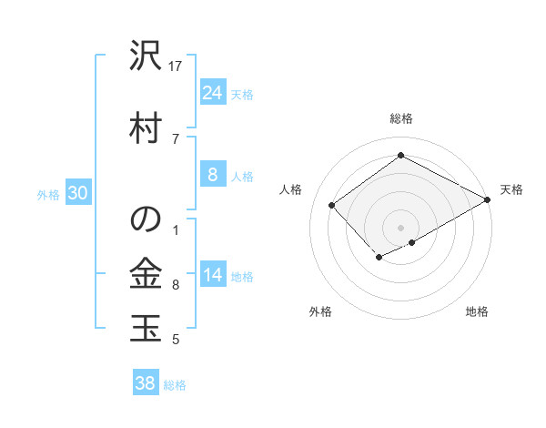 沢村 の金玉さんを姓名の画数から五運を鑑定