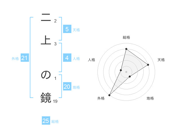 二上 の鏡さんを姓名の画数から五運を鑑定
