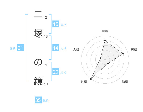 二塚 の鏡さんを姓名の画数から五運を鑑定