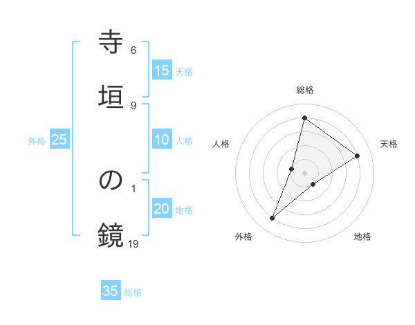 寺垣 の鏡さんの総格は35画の4点!