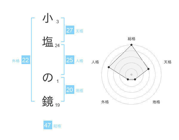 小塩 の鏡さんを姓名の画数から五運を鑑定