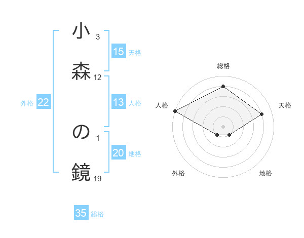 小森 の鏡さんを姓名の画数から五運を鑑定