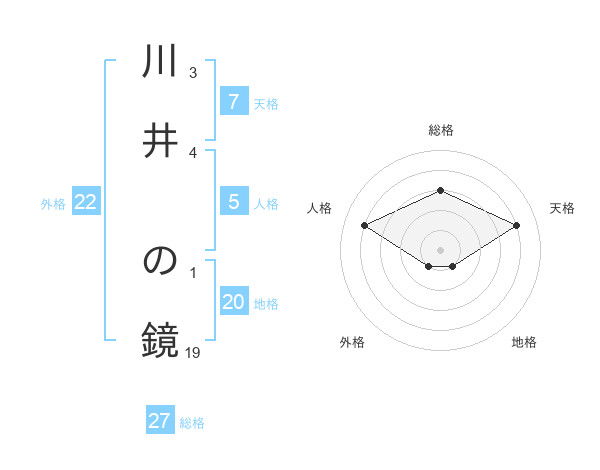 川井 の鏡さんを姓名の画数から五運を鑑定