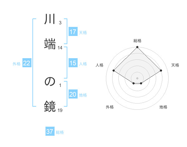 川端 の鏡さんの総格は37画の5点!