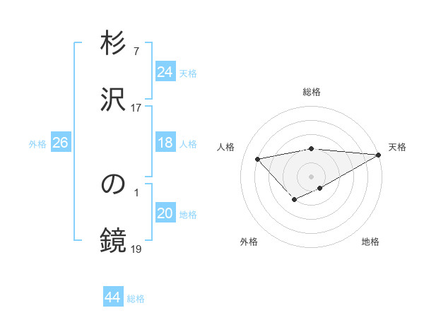 杉沢 の鏡さんを姓名の画数から五運を鑑定