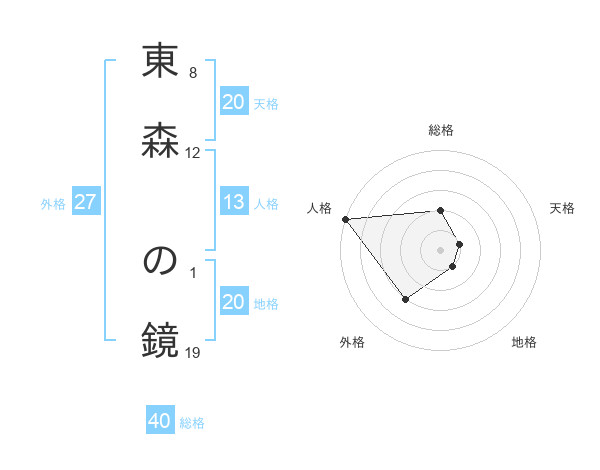 東森 の鏡さんを姓名の画数から五運を鑑定