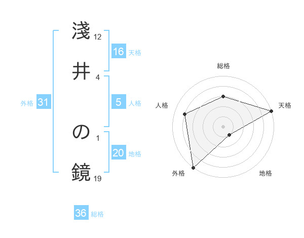 淺井 の鏡さんの天格は16画の5点!