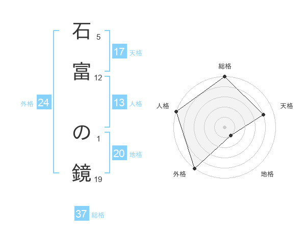 石富 の鏡さんの総格は37画の5点!