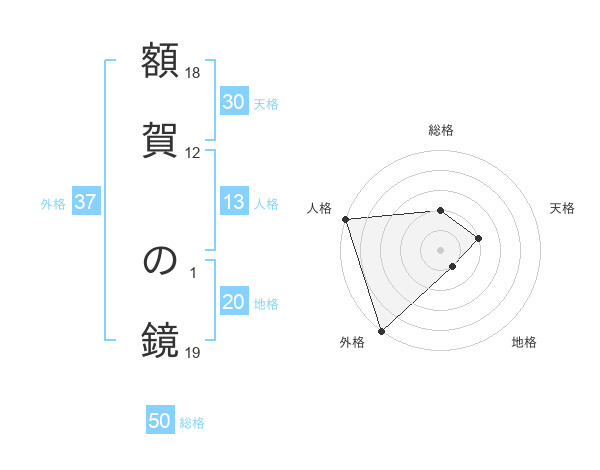 額賀 の鏡さんの地格は20画の1点!