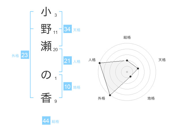 小野瀬 の香さんを姓名の画数から五運を鑑定