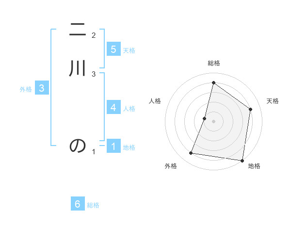 二川 のさんの天格は5画の4点!