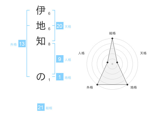 伊地知 のさんの総格は21画の5点!