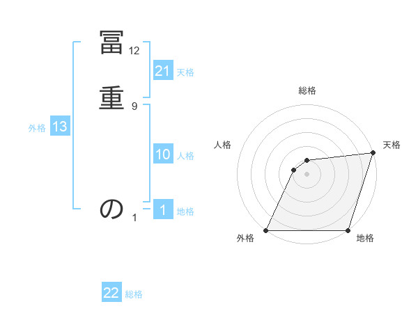 冨重 のさんの外格は13画の5点!