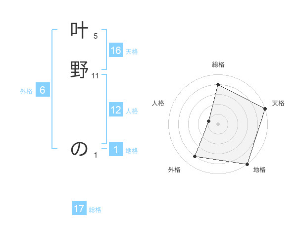 叶野 のさんの総格は17画の4点!